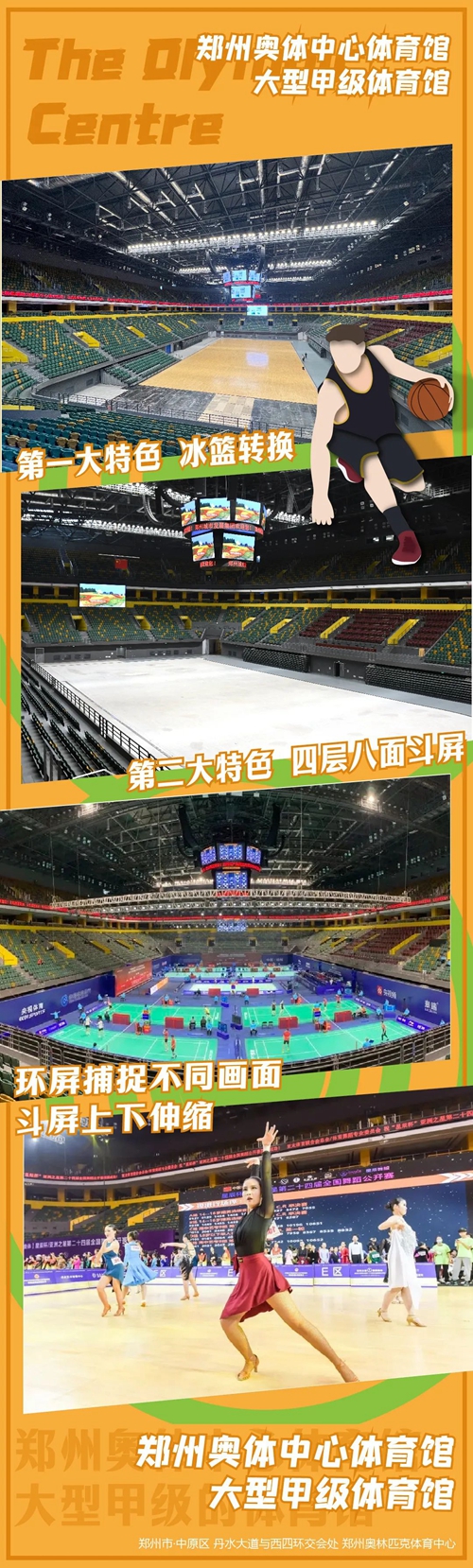 奧體中心體育館作為大型甲級體育館,空間使用靈活,場地利用率高。目前已經(jīng)舉辦了2019年世界乒聯(lián)巡回賽總決賽、2020年世界乒聯(lián)巡回賽總決賽、2019年全國羽毛球單項冠軍賽、2021年全國羽毛球冠軍賽暨第十四屆全運會羽毛球項目資格賽、2022年河南省第一屆職業(yè)技能大賽、2023永慶安瀾德云社岳云鵬·孫越相聲專場等知名賽事活動。下半年,將有更多知名演藝、賽事活動在奧體中心體育館舉辦。主館西側為總面積約2100平方米的籃球熱身館,目前已經(jīng)舉辦過籃球、跆拳道、羽毛球等體育賽事,以及企業(yè)展銷、社區(qū)聯(lián)誼、動漫展等活動;北側為冰上運動中心,擁有1800平方米國際標準冰,致力于為中部地區(qū)提供從啟蒙到精英級的系統(tǒng)化冰上運動培訓。
