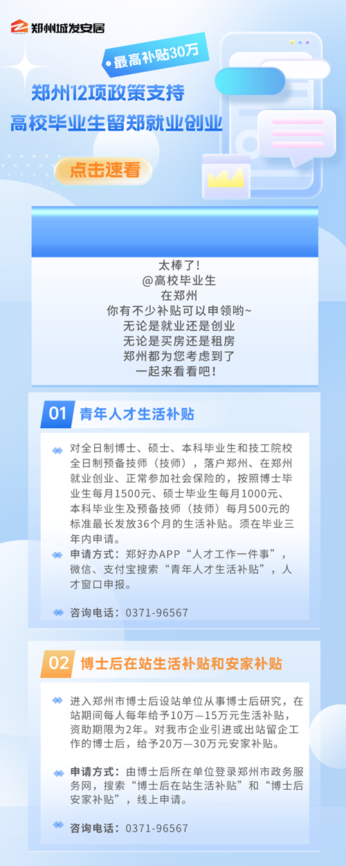 近年來(lái),鄭州市通過(guò)盤活存量房源用作人才公寓、發(fā)放購(gòu)房租房補(bǔ)貼等形式,多渠道解決人才階段性居住需求。比如,鄭州市創(chuàng)新實(shí)施人才補(bǔ)貼,除了人才公寓以外,符合條件的博士、碩士、學(xué)士學(xué)位畢業(yè)生,5年內(nèi)分別可享每月3000元、1500元、1000元房租補(bǔ)助,購(gòu)房給予10萬(wàn)元到30萬(wàn)元不等的一次性購(gòu)房補(bǔ)貼。