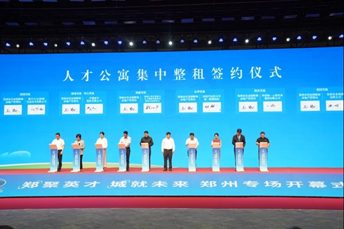 下午,第七屆中國(guó)·河南招才引智創(chuàng)新發(fā)展大會(huì)鄭州專場(chǎng)盛大開(kāi)幕。在開(kāi)幕式上,舉行了人才公寓集中整租簽約儀式。
