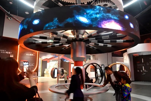 同時,這里以中國科學(xué)家、雙碳目標(biāo)等社會熱點(diǎn)內(nèi)容,以鄭州市為主體提煉電力中樞、智慧電網(wǎng)等地方特色內(nèi)容,實(shí)現(xiàn)主題特色在內(nèi)容設(shè)計(jì)、空間規(guī)劃、形式創(chuàng)意中的多元融合。將抽象的知識通過電磁的故事、趣味性強(qiáng)的創(chuàng)意展項(xiàng)展示給觀眾,集互動參與、活動教育于一體的電磁主題科學(xué)空間,從而激發(fā)青少年的好奇心、探究力、創(chuàng)造力,引導(dǎo)青少年“像科學(xué)家一樣”去提問、探索、試錯、分析。