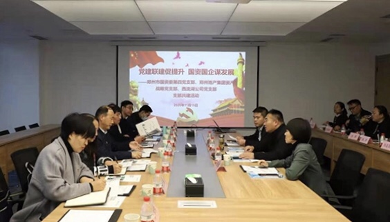 為深入學(xué)習(xí)貫徹黨的十九屆五中全會精神,進(jìn)一步促進(jìn)國資國企改革發(fā)展,不斷探索黨建與企業(yè)科學(xué)發(fā)展的有機(jī)融合,11月19日下午,鄭州市國資委第四黨支部與鄭州地產(chǎn)集團(tuán)資產(chǎn)戰(zhàn)略黨支部、西流湖公司黨支部聯(lián)合開展支部共建活動。鄭州市國資委黨委委員、副主任劉學(xué)銀,副調(diào)研員范桂田,第四黨支部書記、財(cái)務(wù)監(jiān)管處處長范競,產(chǎn)權(quán)管理處處長常艷麗,鄭州地產(chǎn)集團(tuán)資產(chǎn)戰(zhàn)略黨支部書記、資產(chǎn)運(yùn)營部部長王樂琪,西流湖公司黨支部書記、董事長、總經(jīng)理吉獻(xiàn)亮,副總經(jīng)理李金光參加活動。