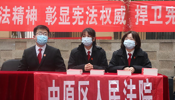 此次宣傳以“尊崇憲法 學(xué)習(xí)憲法 遵守憲法 維護(hù)憲法 運(yùn)用憲法”為主題,通過(guò)懸掛條幅、擺放展架、發(fā)放宣傳冊(cè)、法律讀本、現(xiàn)場(chǎng)說(shuō)法等方式,重點(diǎn)宣傳習(xí)近平總書(shū)記全面依法治國(guó)新理念新思想新戰(zhàn)略,黨的十九屆五中全會(huì)精神,新中國(guó)憲法發(fā)展歷程、憲法的地位和作用,憲法的基本原則和主要條款以及民法典、掃黑除惡、防詐騙、防范非法集資等相關(guān)內(nèi)容。
