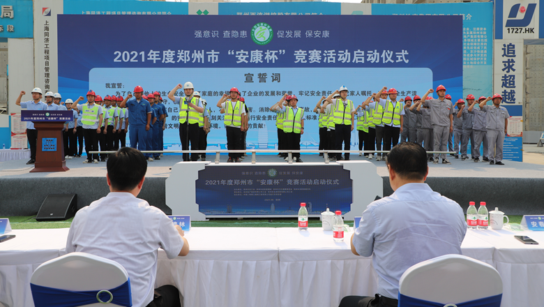 為深入貫徹落實(shí)習(xí)近平總書記有關(guān)加強(qiáng)安全生產(chǎn)工作的部署和要求,進(jìn)一步強(qiáng)化各級各部門、各企業(yè)主體的安全責(zé)任意識,確保我市安全生產(chǎn)形勢持續(xù)好轉(zhuǎn),職工安全健康不斷鞏固。6月11日上午,由鄭州市總工會、鄭州市應(yīng)急管理局、鄭州市衛(wèi)生健康委員會及鄭州市消防救援支隊(duì)主辦,鄭州地產(chǎn)集團(tuán)工會、鄭州西流湖控股有限公司工會承辦的鄭州市2021年“安康杯”競賽啟動儀式在中原新區(qū)廟王東安置區(qū)項(xiàng)目成功舉行。鄭州市相關(guān)組織部門、市總工會成員單位、地產(chǎn)集團(tuán)、西流湖公司、各參建單位共200余人參加啟動儀式。鄭州市一級巡視員,市總工會黨組書記、主席趙新中、鄭州市衛(wèi)生健康委員會黨組成員、二級調(diào)研員楊德林、鄭州市應(yīng)急管理局三級調(diào)研員安春茂、鄭州市消防救援支隊(duì)副支隊(duì)長、滅火救援指揮部部長李隆、鄭州市總工會副主席宋少丹、鄭州地產(chǎn)集團(tuán)有限公司監(jiān)事會主席、工會主席李靜波、鄭州地產(chǎn)集團(tuán)西流湖公司黨支部書記、董事長、總經(jīng)理 吉獻(xiàn)亮,中建二局第三建筑工程有限公司西北分公司黨委副書記、執(zhí)行總經(jīng)理趙海軍出席儀式。啟動儀式由市總工會勞動和經(jīng)濟(jì)部部長宋慧主持。
